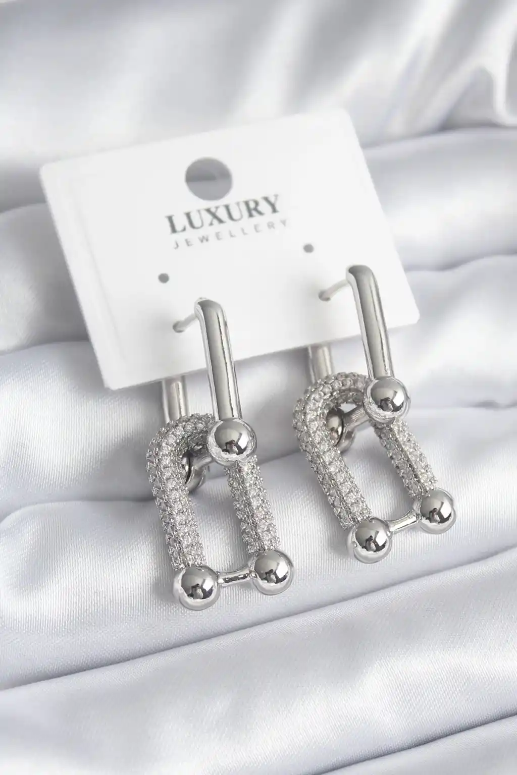 Pirinç Gümüş Renk Zirkon Taşlı Model VIP Seri Kadın Küpe