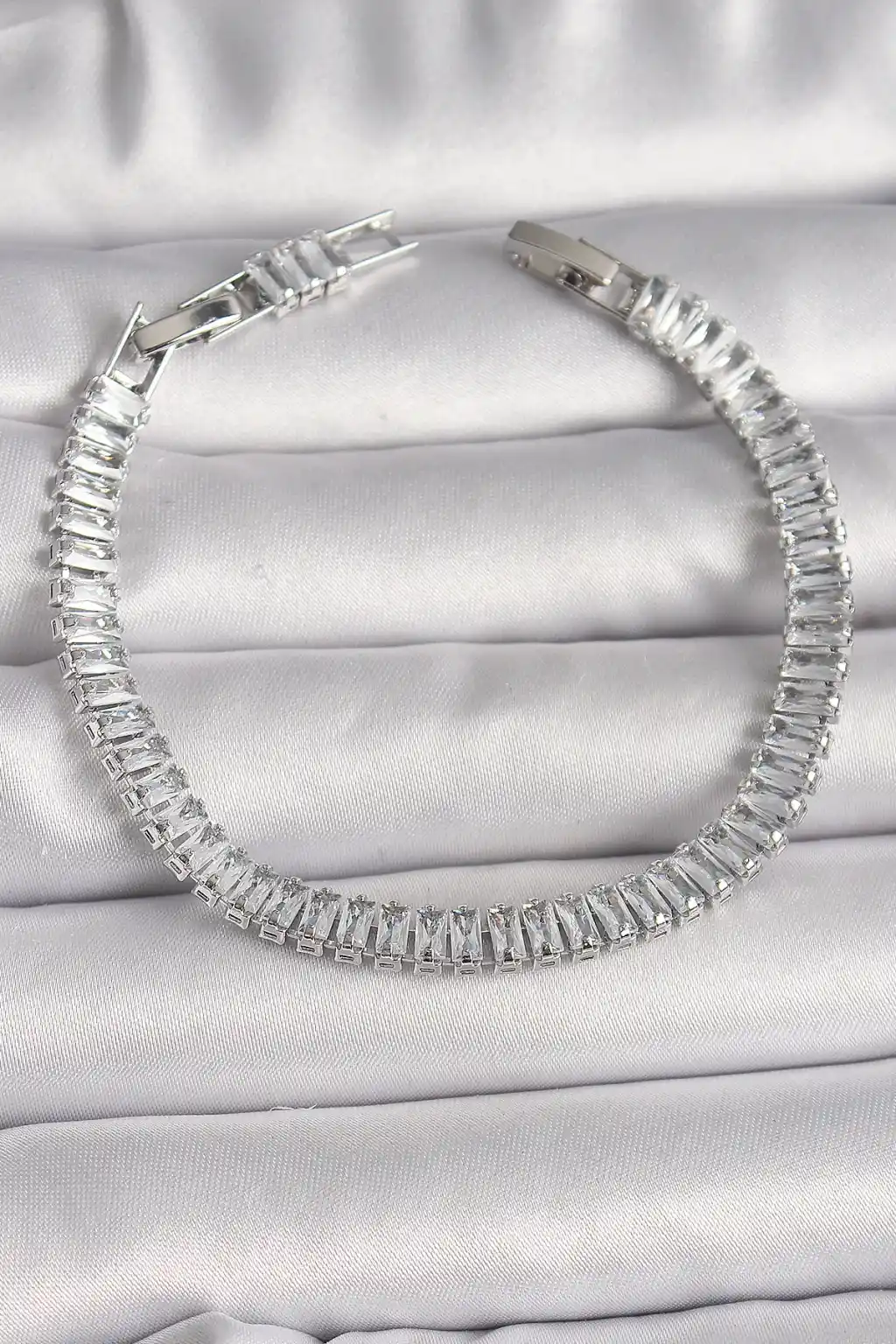 Pirinç Gümüş Renk Zirkon Taşlı Su Yolu Model Kadın Bileklik