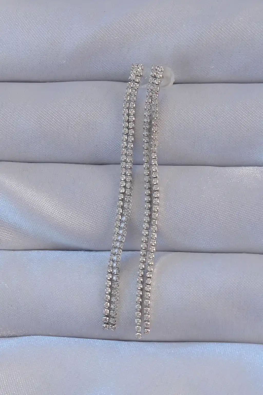 Pirinç Gümüş Renk Zirkon Taşlı Su Yolu Model Küpe