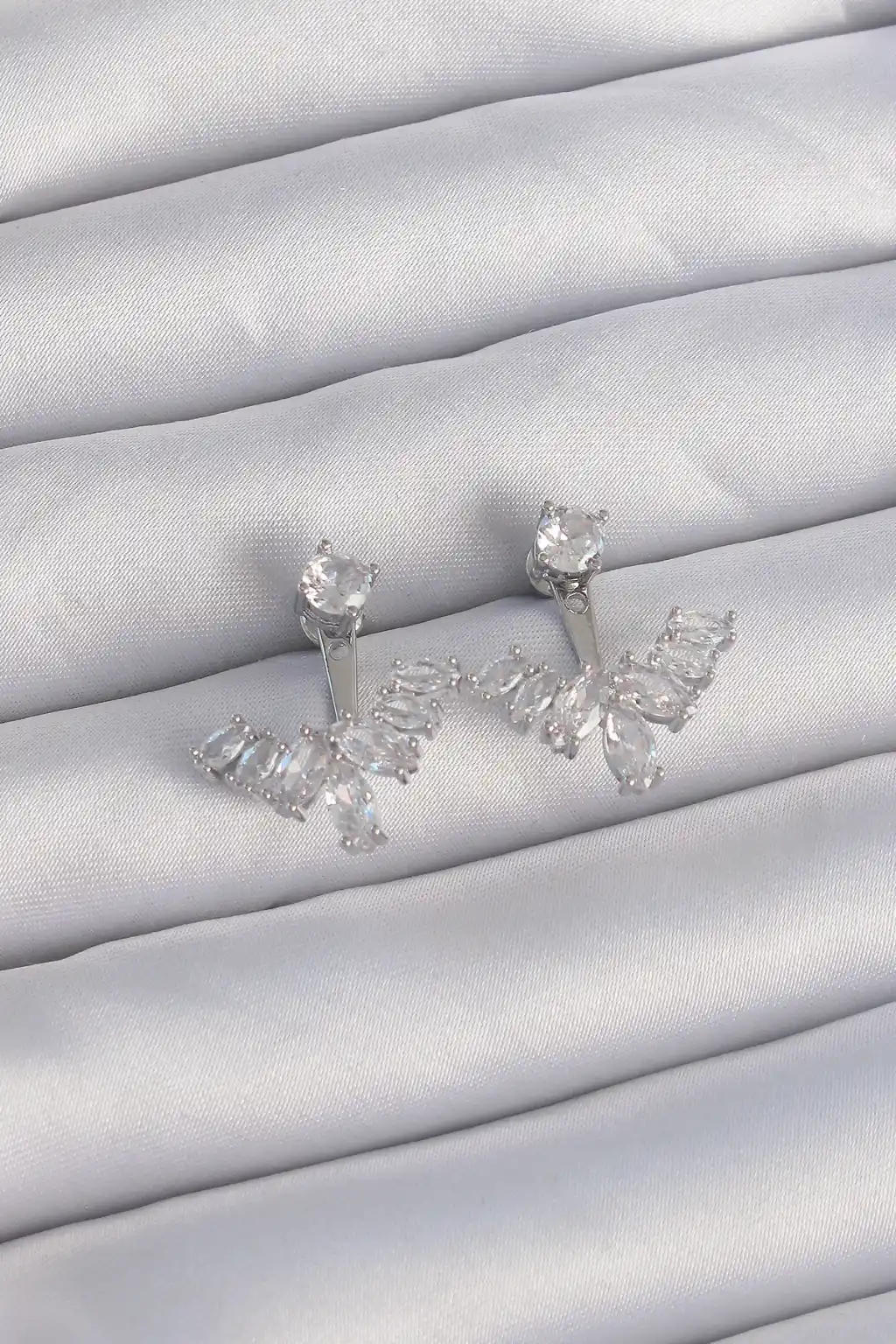 Pirinç Gümüş Renk Zirkon Taşlı V Model Küpe
