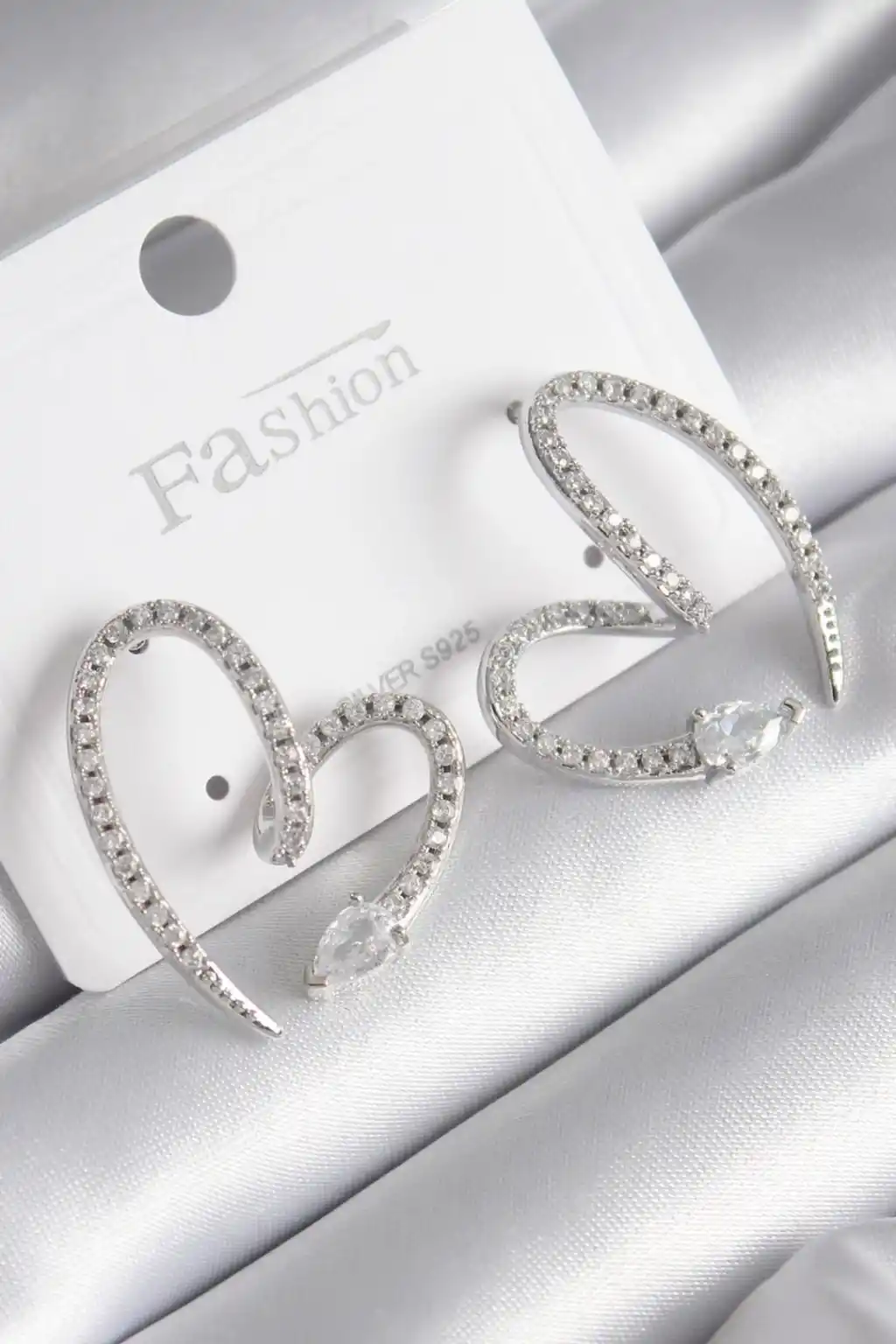 Pirinç Gümüş Renk Zirkon Taşlı Yılan Kalp Model Kadın Küpe