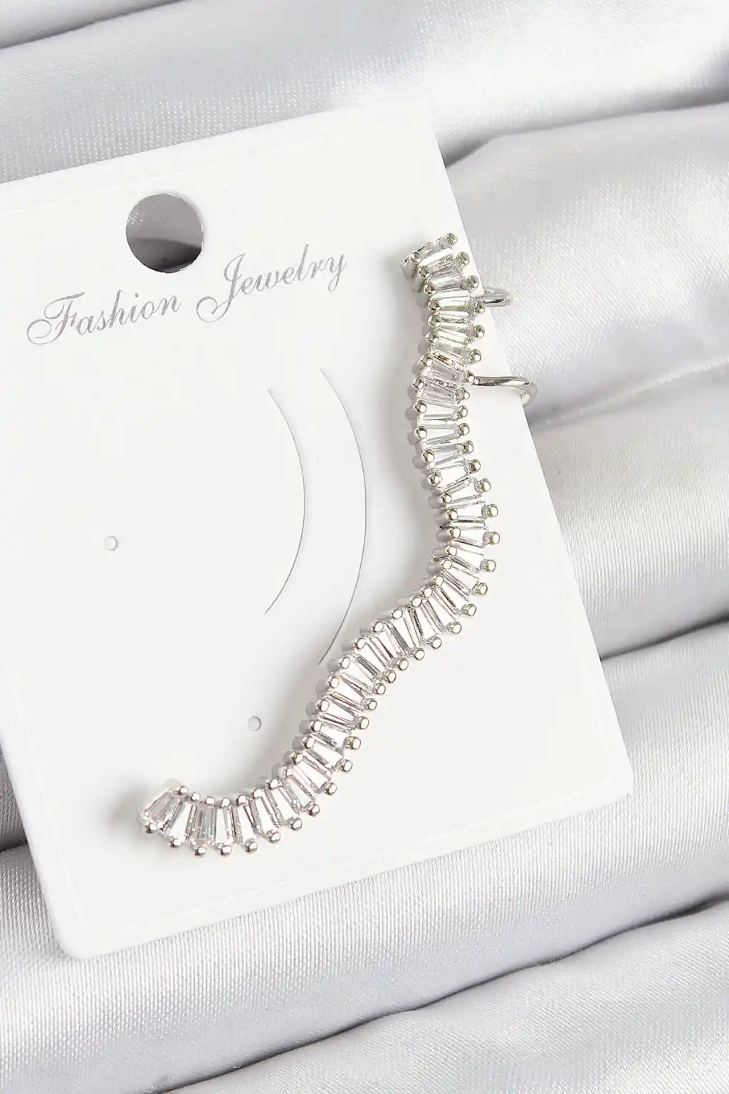 Pirinç Su Yolu Model Gümüş Renk Sağ Kıkırdak Küpe