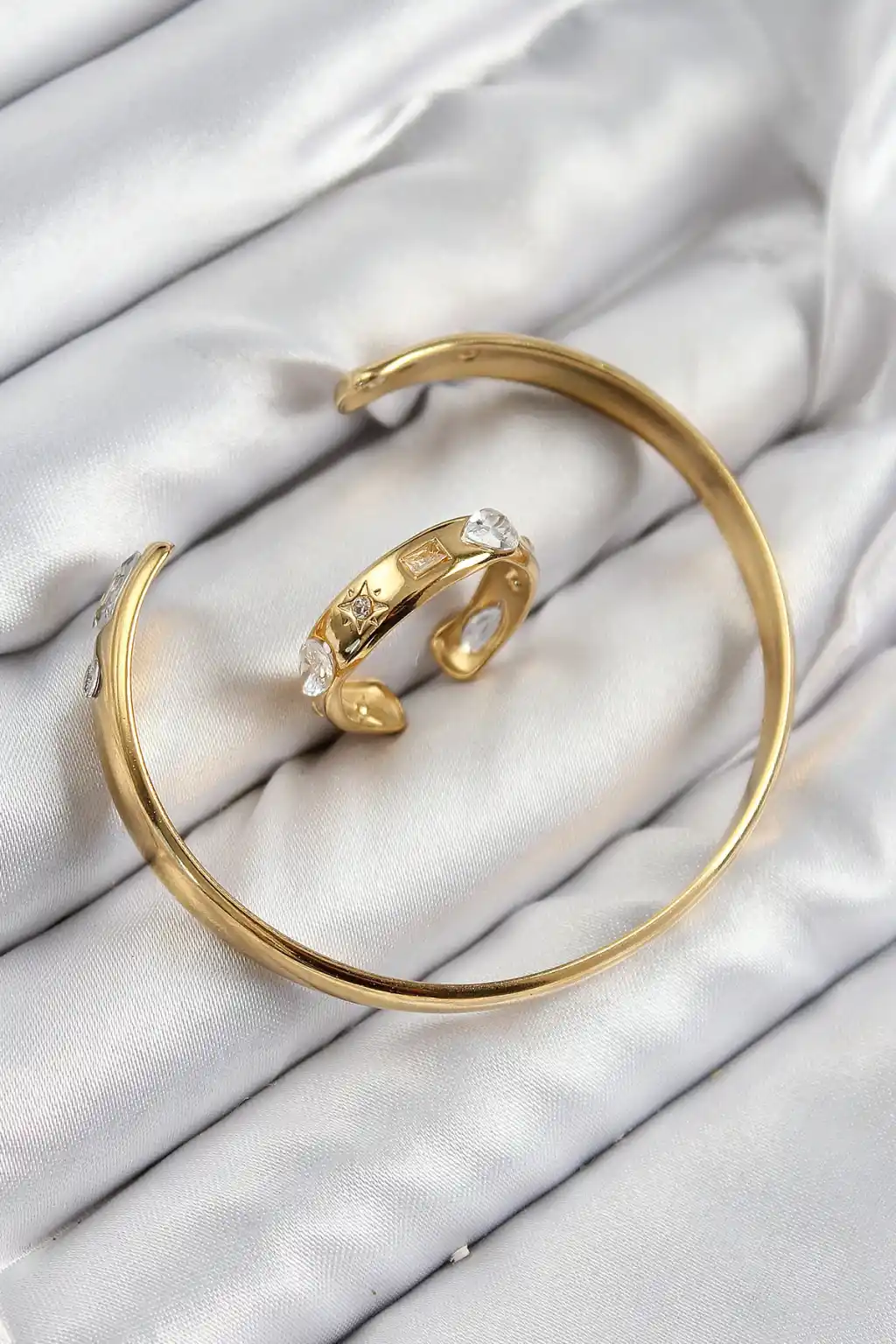 Pirinç Zirkon Taşlı Ayrık Model Gold Renk Bileklik Yüzük Set