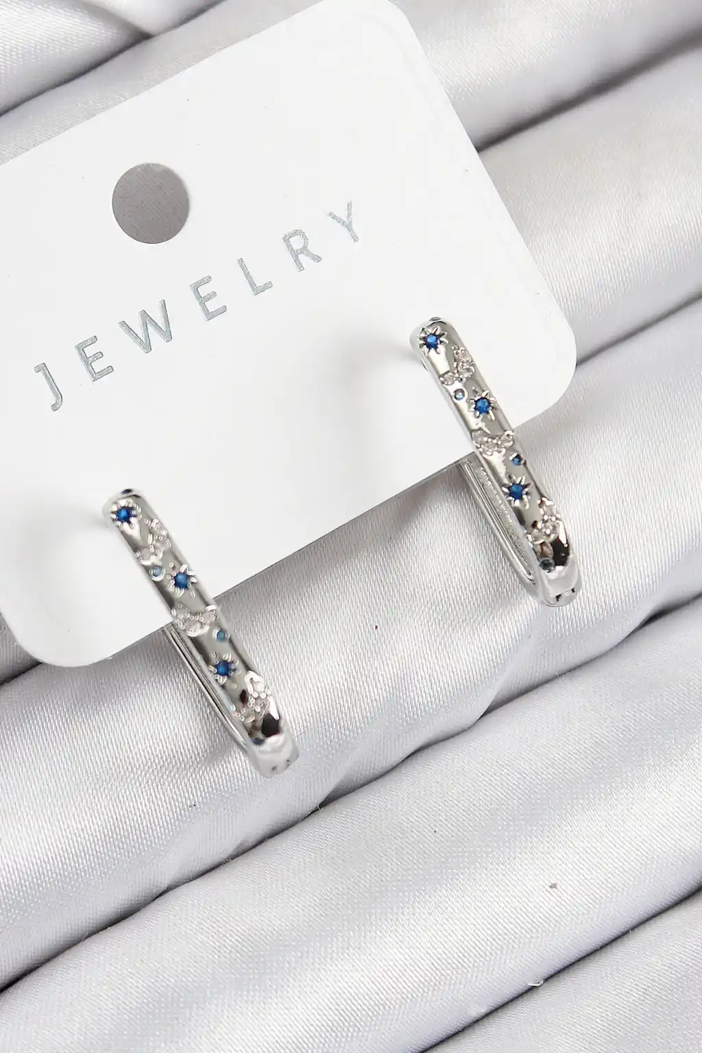 Pirinç Zirkon Taşlı Çiçek Desenli Model Gümüş Renk Kadın Küpe