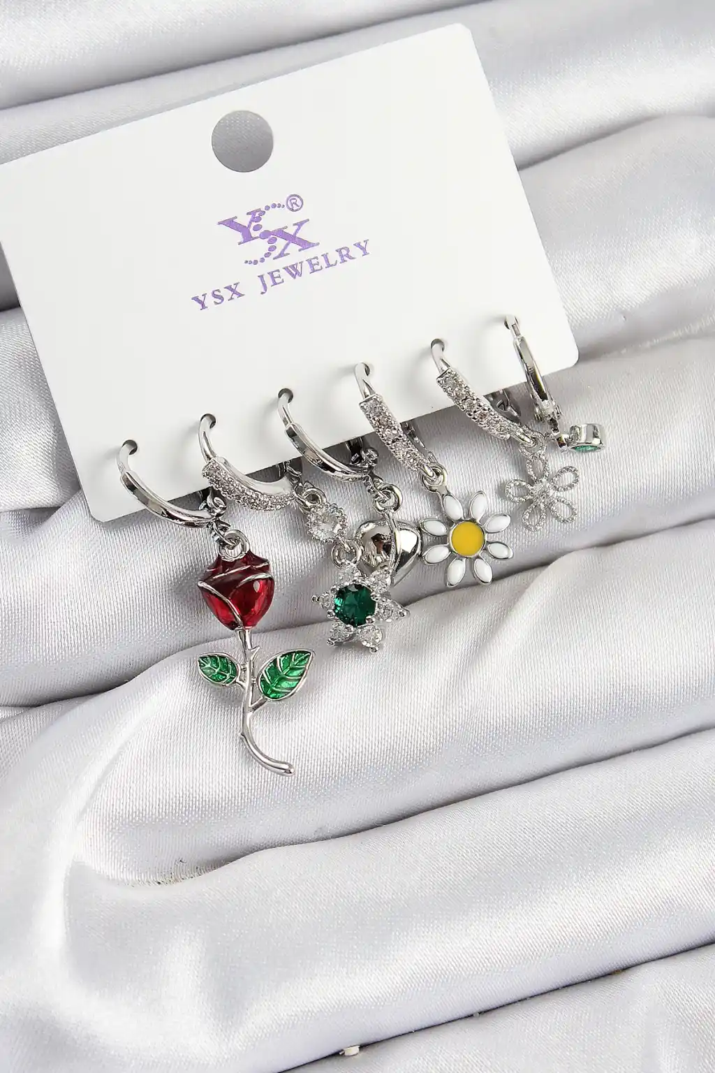 Pirinç Zİrkon Taşlı Gül Ve Papatya Model Gümüş Renk 3'lü Çift Kadın Küpe