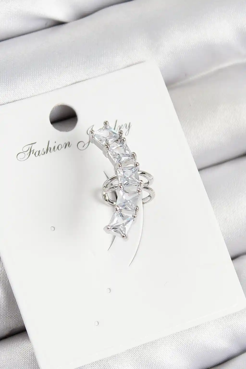 Pirinç Zirkon Taşlı Model Gümüş Renk Sağ Kıkırdak Küpe