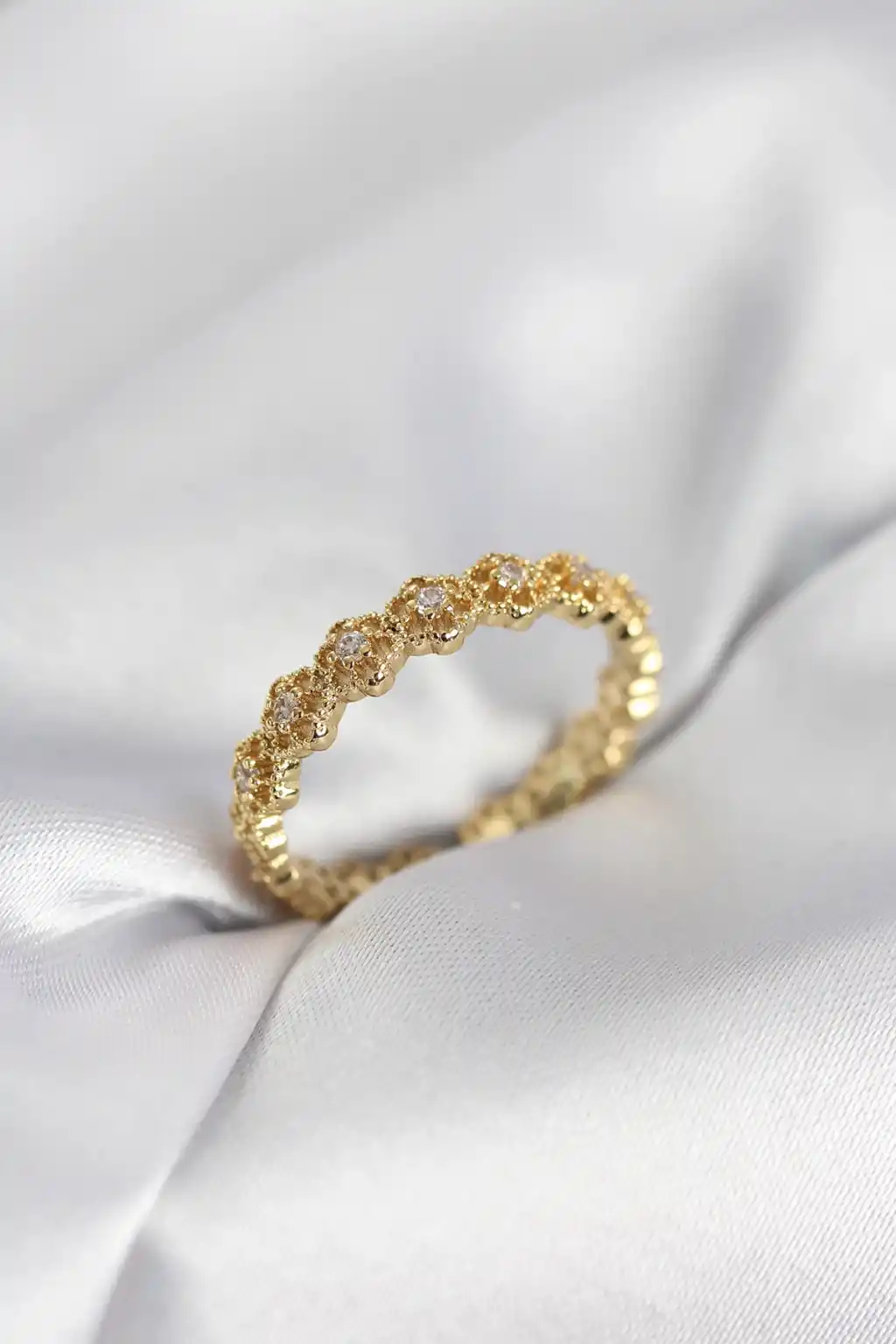 Sıralı Çiçek Model Gold Renk Zirkon Taşlı Kadın Yüzük