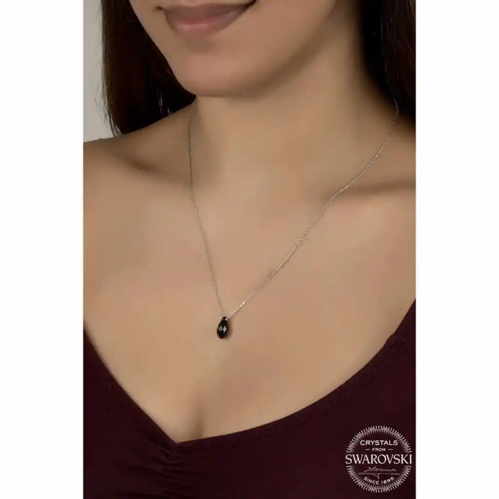 Swarovski Crystal Taşlı Drop Kesim Gümüş Kadın Kolye
