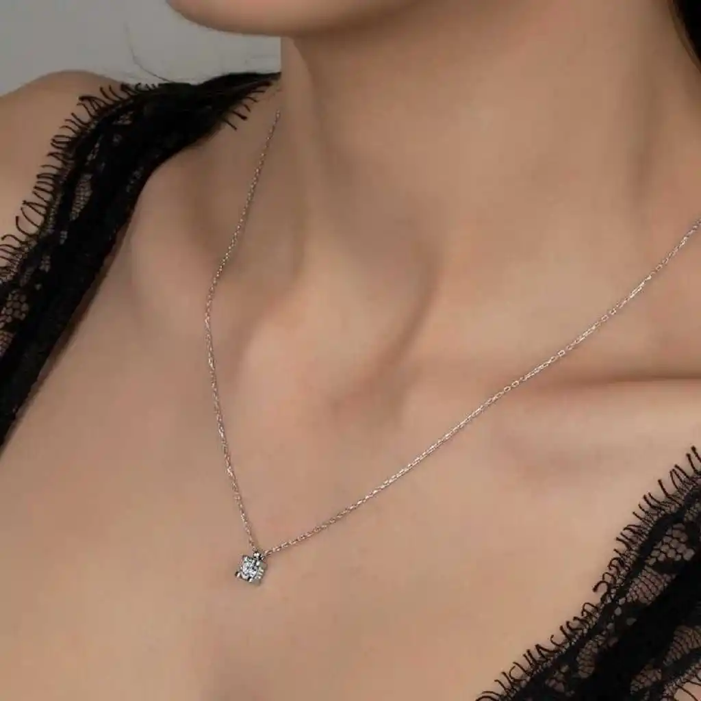 Swarovski Taşlı Tektaş Gümüş Bayan Kolye