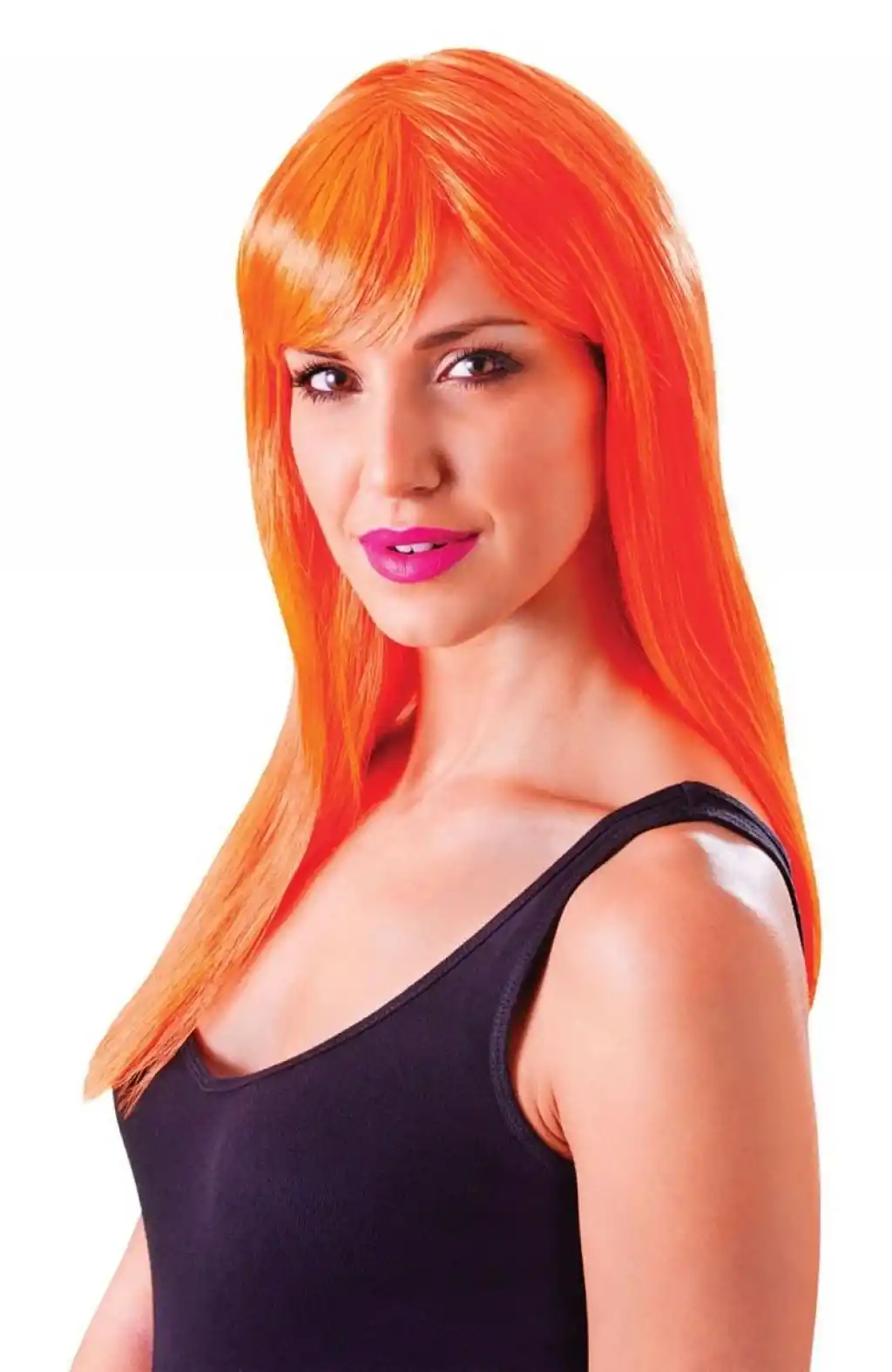 Turuncu Renk Uzun Düz Parti Peruğu