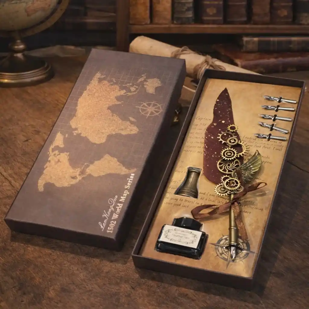 Ürün Özellikleri:Divit Kalem Ucu Metal Tasarımlı Uç Kısmı Tüylüdür.Yanında 5 Farklı Yazı Başlığı Vardır.Set İçerisinde Divit Kalem Mürekkebi Yer Almaktadır.Set İçerisinde Divit Kalem İçin Masaüstü Aparatı Yer Almaktadır.Divit Kalem Seti Özel Tasarımlı Hediyelik Kutusunda Gönderilmektedir.Paket İçeriği:1 Adet Tüylü Kalem1 Adet Kalemlik1 Adet Mürekkep5 Adet Divit Uç