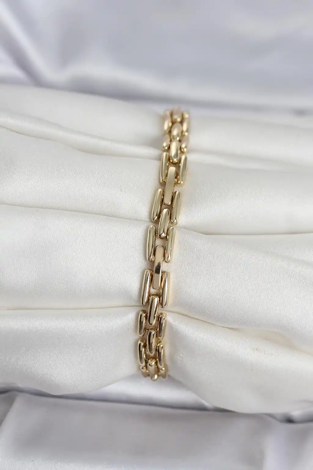 Pirinç Gold Renk Petek Model Zirkon Taşlı Kadın Bileklik