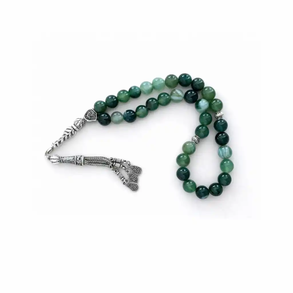 Yeşil Akik Doğal Taş Tesbih -10 mm küre kesim
