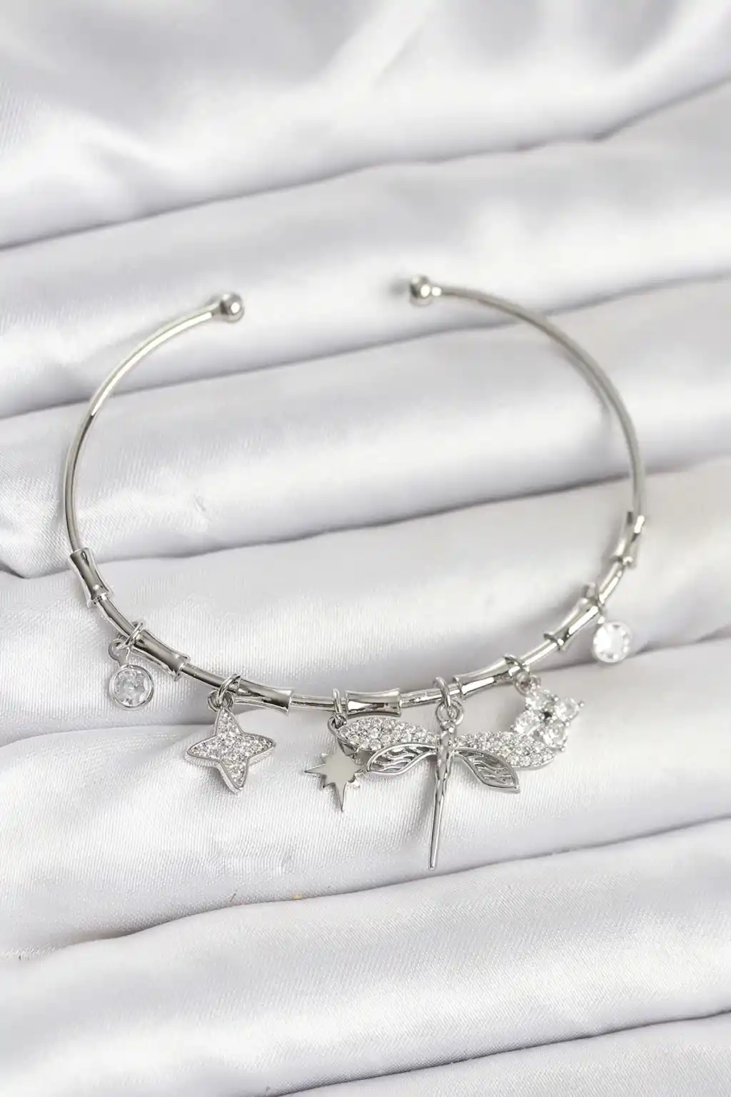 Yusufçuk Charmlı Gümüş Renk Pirinç Kadın Bileklik