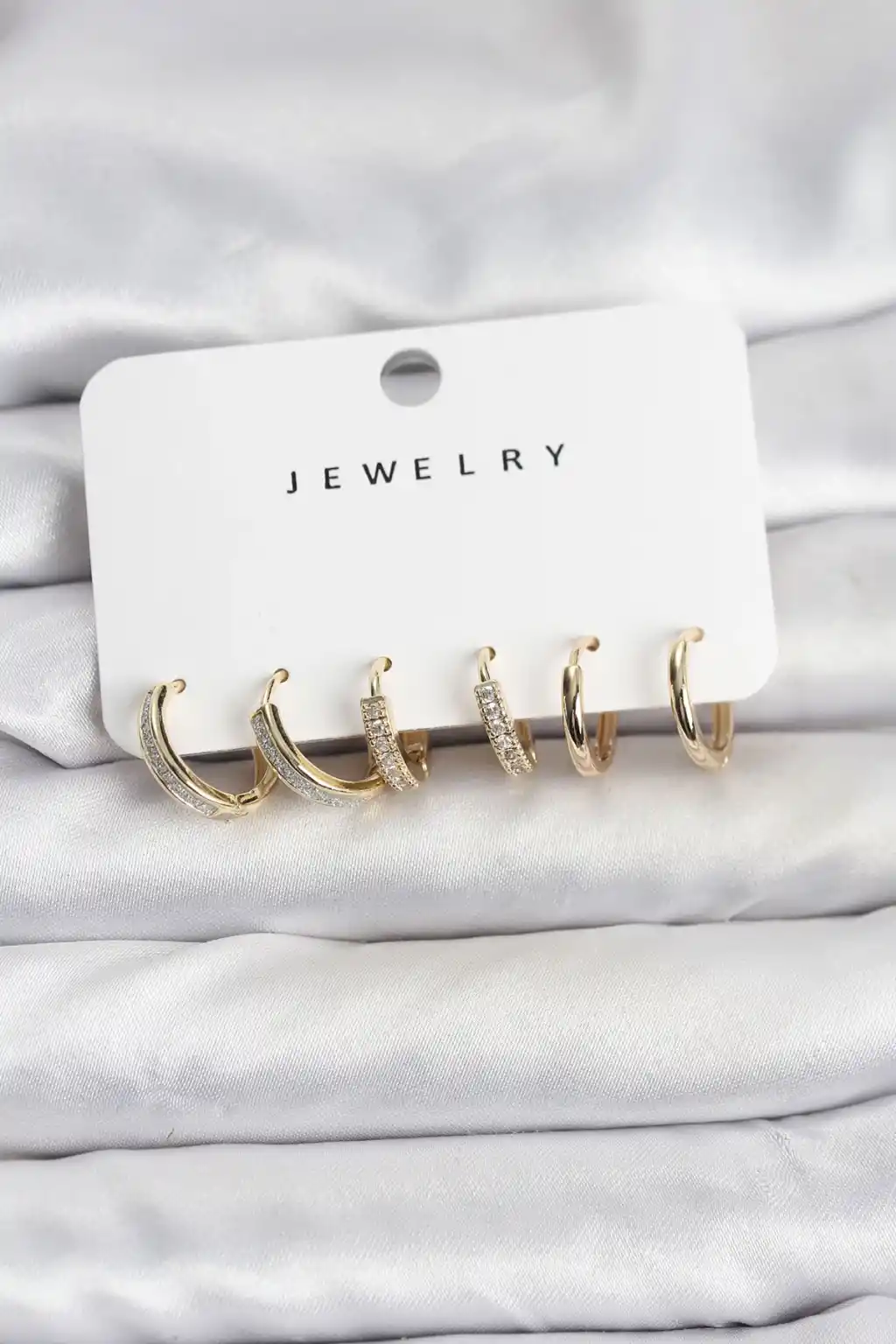 Zirkon Taşlı Gold Renk Pirinç Kadın Küpe Seti